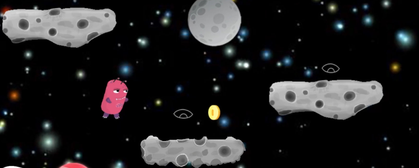 Het eerste prototype was het lastigst. Omdat ons idee voor een spel origineel in Augmented Reality zou zijn, besloot ik dat ik Unity kon leren om een AR spel te maken. Ik kwam er snel achter dat dit niet het geval was, en besloten we voor de toekomstige prototypes een simpele game engine te gebruiken. Door het ontwerpproces heen ontwierp ik gebaseerd op de bedachte karakters en verhaal van mijn teamgenoot een setting die zich afspeelde in de ruimte, die er kindvriendelijk uit zag. Daarnaast heb ik met behulp van een expert in TouchDesigner een systeem gemaakt waarin elementen in het spel reageren op de ademhaling van de speler via een microfoon. Ademhaling werd een fundamenteel deel van ons concept, na aansporing van de opdrachtgever.